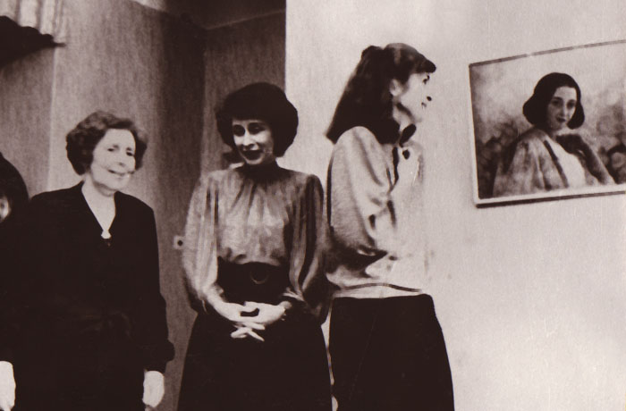 Tolstaya, Marina Shilovskaya, and Katya Magdasieva looking at the portrait